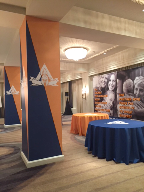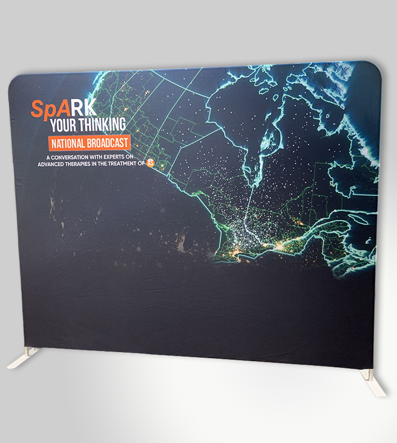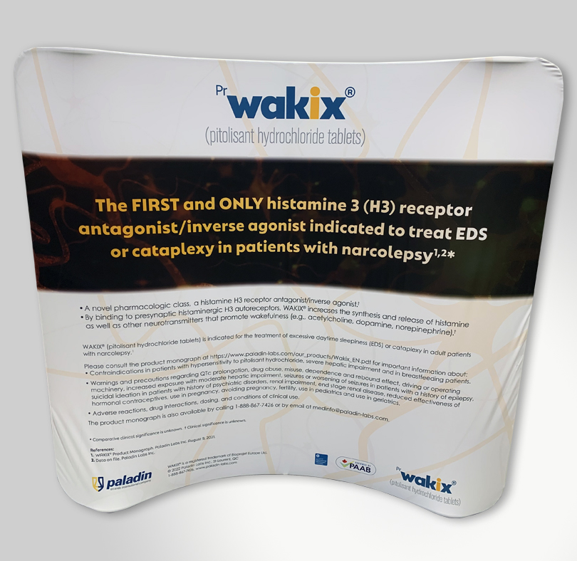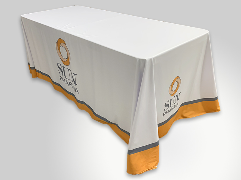 Fully printed fabric table covers and backdrops, removable low-tack wall and pillar artwork